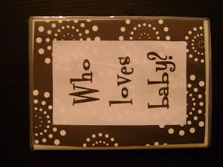 So here's what the gift was...a memory box complete w/poem, (which held the following items inside) 2 burp cloths, paci strap, a bib, photo album book, and a small tag chewie. Each piece was individually wrapped in a clear bag tied with a ribbon. The whole box was tied up in a coordinating bow as well. Black & white all the way & to the max!